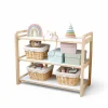 Fabricada en melamina simil madera y blanca, combina funcionalidad, estilo y durabilidad. Es muy fácil de armar y se adapta a cualquier habitación o rincón de lectura infantil, aportando un toque cálido y decorativo.