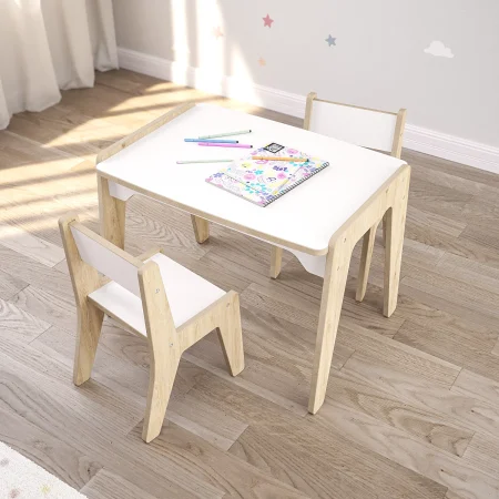 Crea un espacio ideal para jugar, dibujar y aprender con este juego de mesa y sillas infantil. Diseñado especialmente para niños, combina seguridad, confort y estilo en un conjunto práctico.